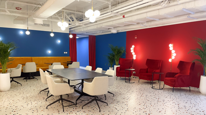 - 3,297 sq.m of serviced space featuring 116 workstations on the 45th floor with breathtaking city views.